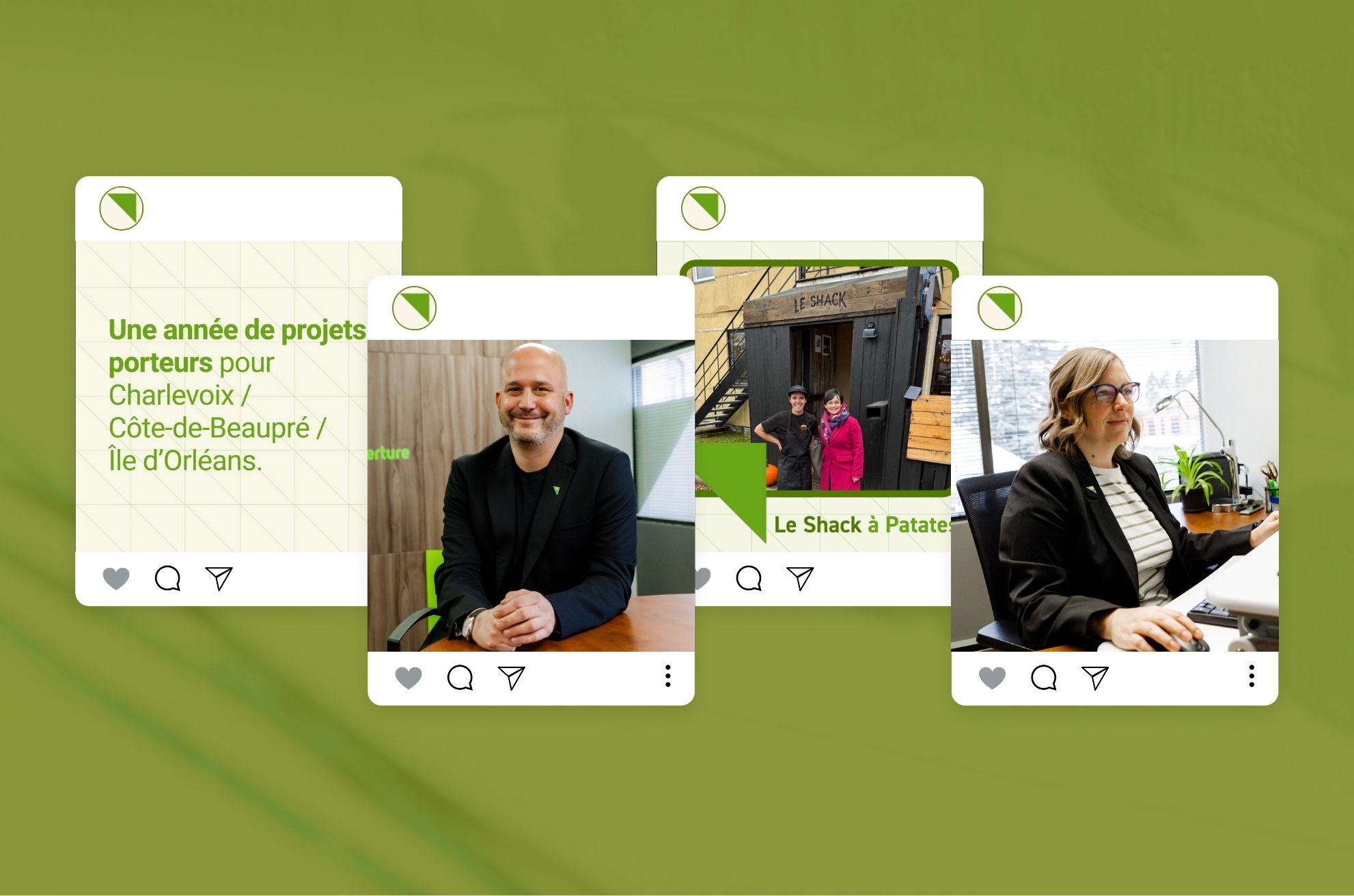 Notre intervention s’est articulée autour d’une approche 360 incluant l’élaboration du plan stratégique, la création de contenu original et la gestion quotidienne des médias sociaux. L’objectif principal était de démystifier les services offerts par l’organisation et de positionner la SADC comme le partenaire de premier plan pour les entrepreneurs et les initiatives locales de Charlevoix, la Côte-de-Beaupré et l’Île d’Orléans.
